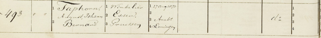01.Paspoort signalement aankomst 27 augustus 1870 August Taphorn Amsterdam