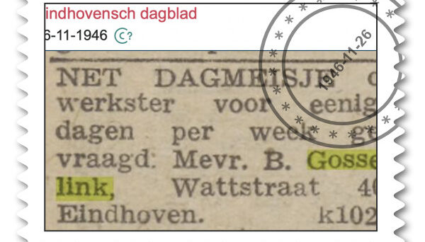 In 1945 kwam de Familie Gosselink-Leenders naar Eindhoven en kregen een huurwoning a/d Wattstraat 40. Waar ze tot begin 70er jaren woonde. Daarna verhuisde ze naar Nuenen in het huis waar Ben Gosselink en zijn gezin woonde. Deze verhuisden in Nuenen naar een koophuis. Opa Gosselink hield het bij huurhuizen als het huis dan aan een opknapbeurt toe was moest de huisbaas het werk doen. Hij kon heel goed redeneren, schrijven en goed met cijfers overweg. Kortom geen rechtse handen.