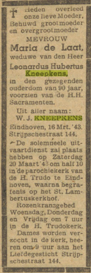 Bron: www.delpher.nl. Dagblad van het Zuiden voor Eindhoven, Meierij, Peel en Kempenland 17 maart 1943.