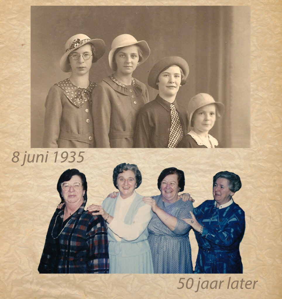 de 4 gezusters braaf op een rijtje. Klaar voor de bruiloft van hun vader met Dina Baken.