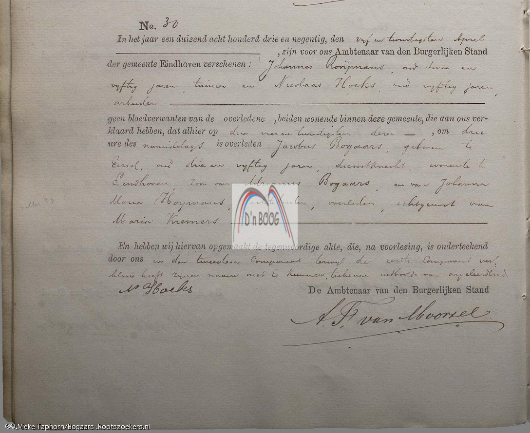 1892. overlijden. Bogaars J.H.C. dv Bogaars Kremers