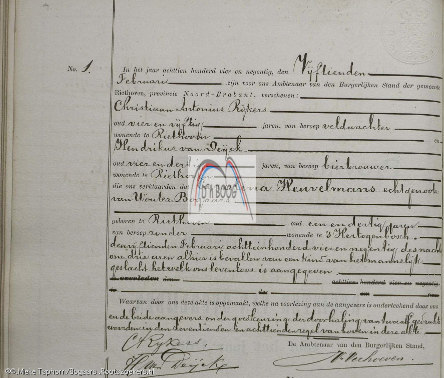 1893.overlijden. Bogaars Jacobus. gehuwd met Kremers. zv. Bogaars Hoijmans