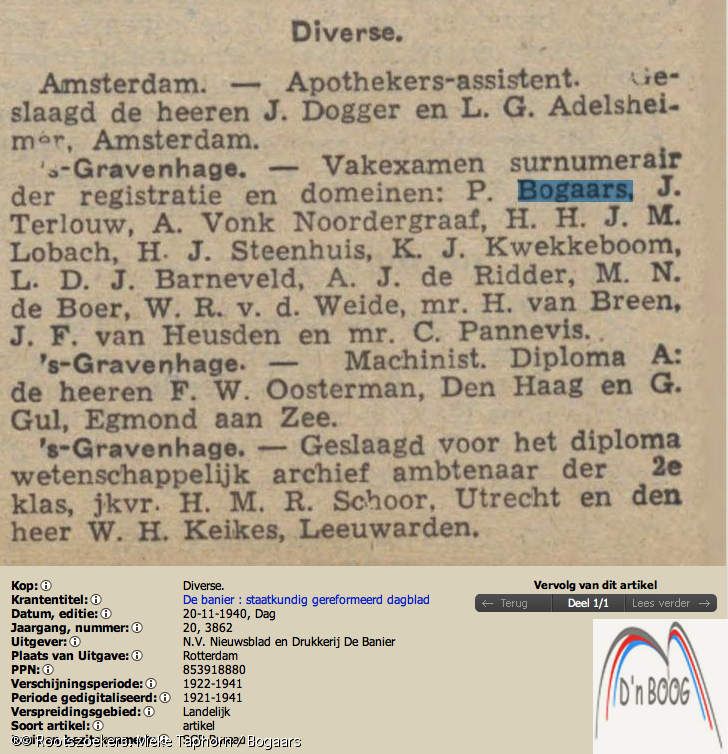 1940,overlijden M.Vogelzang, gehwud met Bogaars