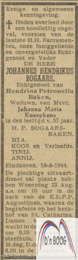 1943.overleden. M.P.Bogaars, 70 jaar, Dordrecht